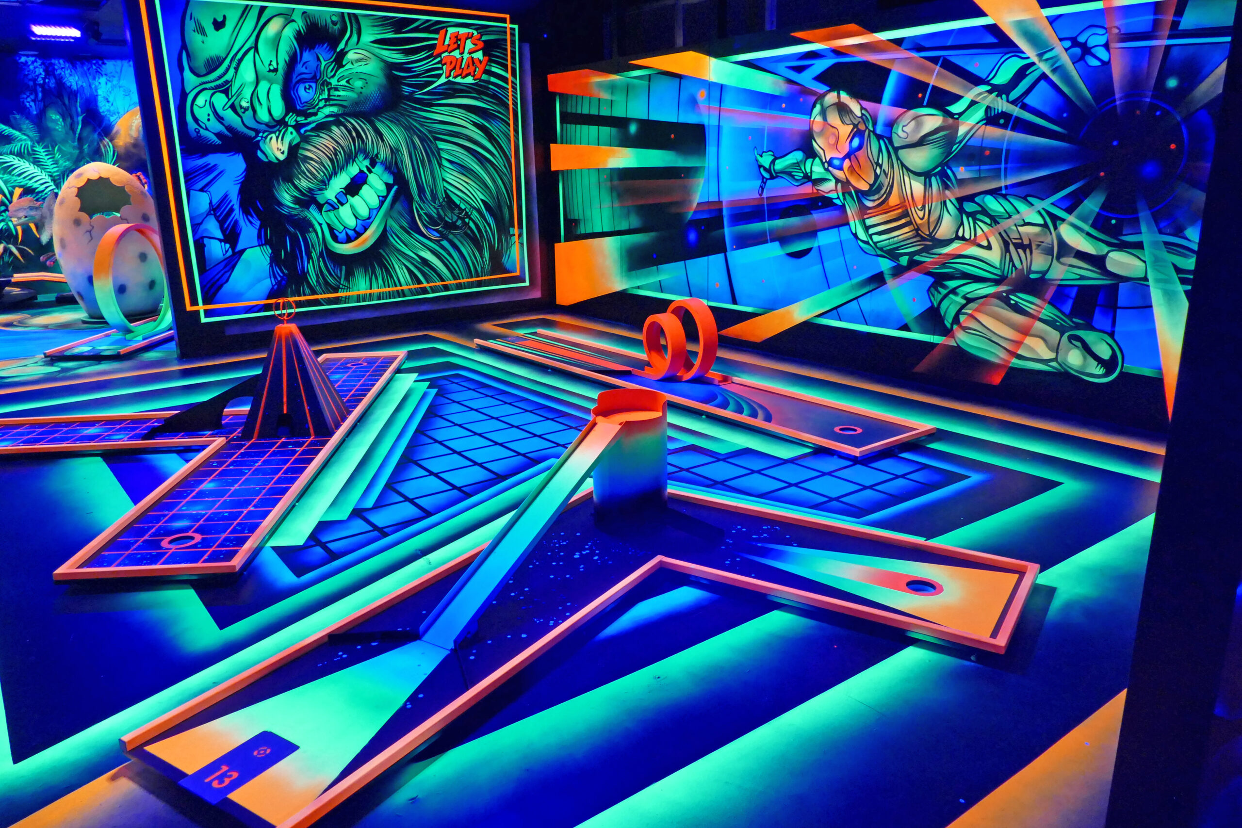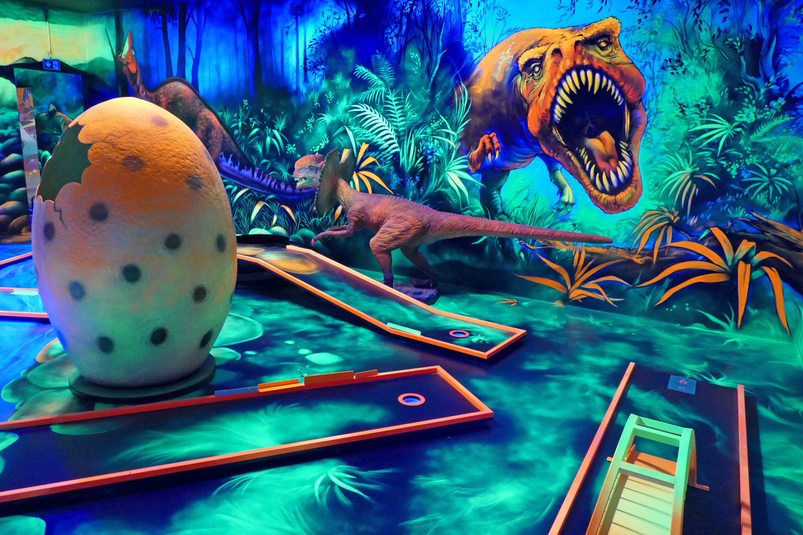 Erlebe fünf fantasievolle Welten mit 16 Bahnen im Schwarzlicht! Tauche ein in die verschiedenen Zeitalter und deren fantasievolle Lebensräume. Beginne Deine Tour in den Tiefen des Meeres und tauche ab in die faszinierende Unterwasserwelt.